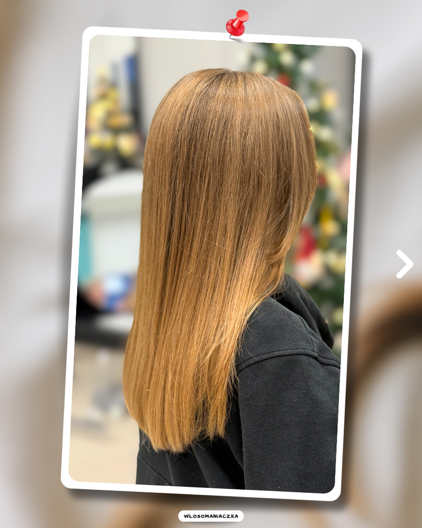 Dziś stworzyłyśmy look, który łączy wszystko, co włosy kochają najbardziej: odżywienie, świeży kolor i perfekcyjne strzyżenie 💛